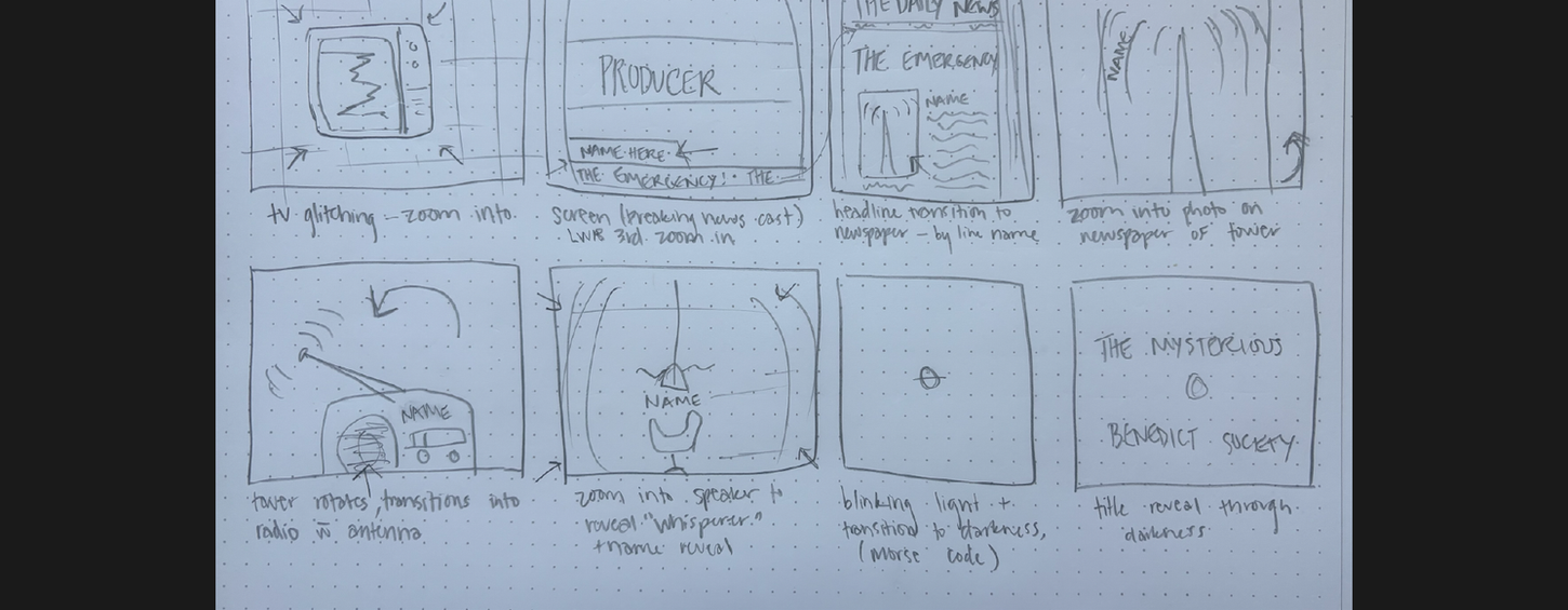 Solutions + Lessons Learned: In directing this piece, I wanted to introduce the story’s overarching theme of mass media communications as a method of control, while resolving with a reference to morse code, the mode of communication the main characters use in secret to overcome the conflict. This was ultimately achieved through the use of photographic visuals, paired with commanding typefaces, muted colors, and a song with strong thematic relevance.